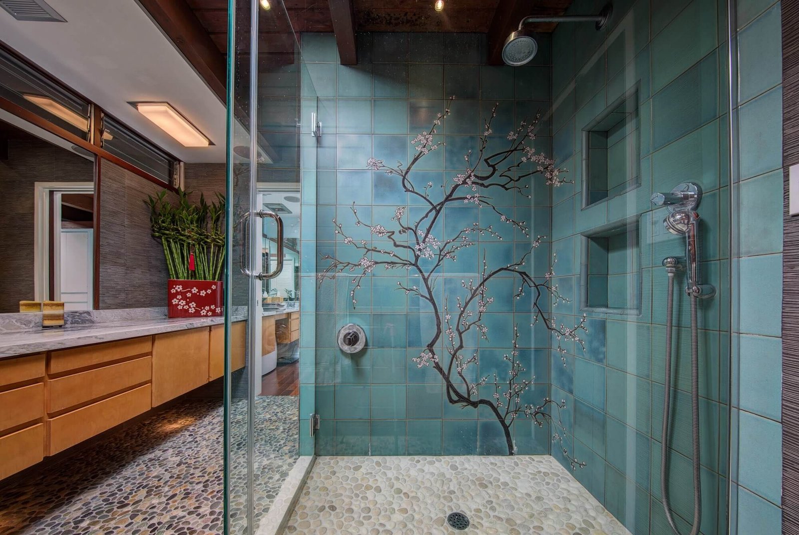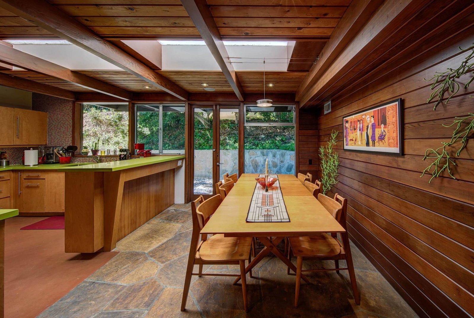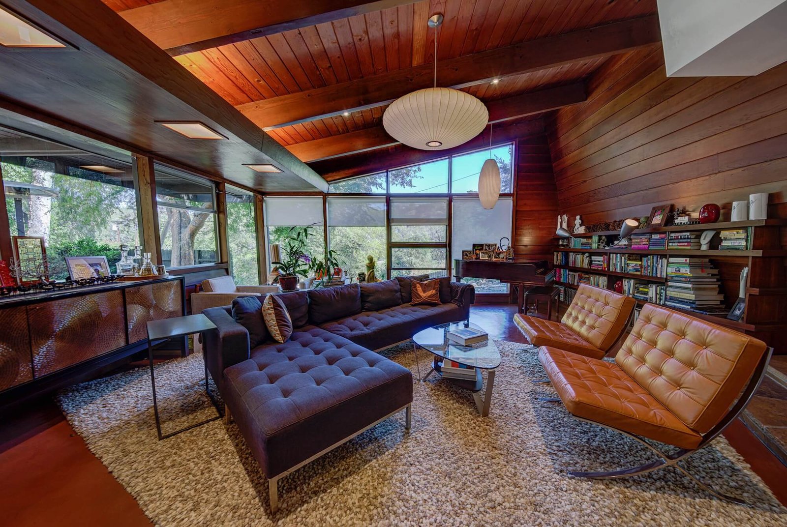 Restoring and revitalizing this “Frank Lloyd Wright” inspired home with colorful textiles and rich finishes while also utilizing the large amounts of glass – achieving a balance between the lightness and airiness of the glass and the solid hard surfaces giving this home warmth and amazing style.